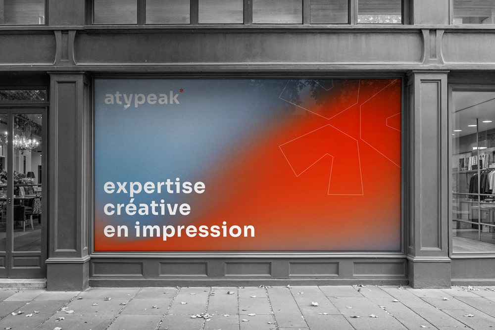 Avec atypeak, vos vitrines deviennent de véritables supports de communication. Chaque création est pensée pour que votre message soit clair, visible et impactant, même depuis l’extérieur.